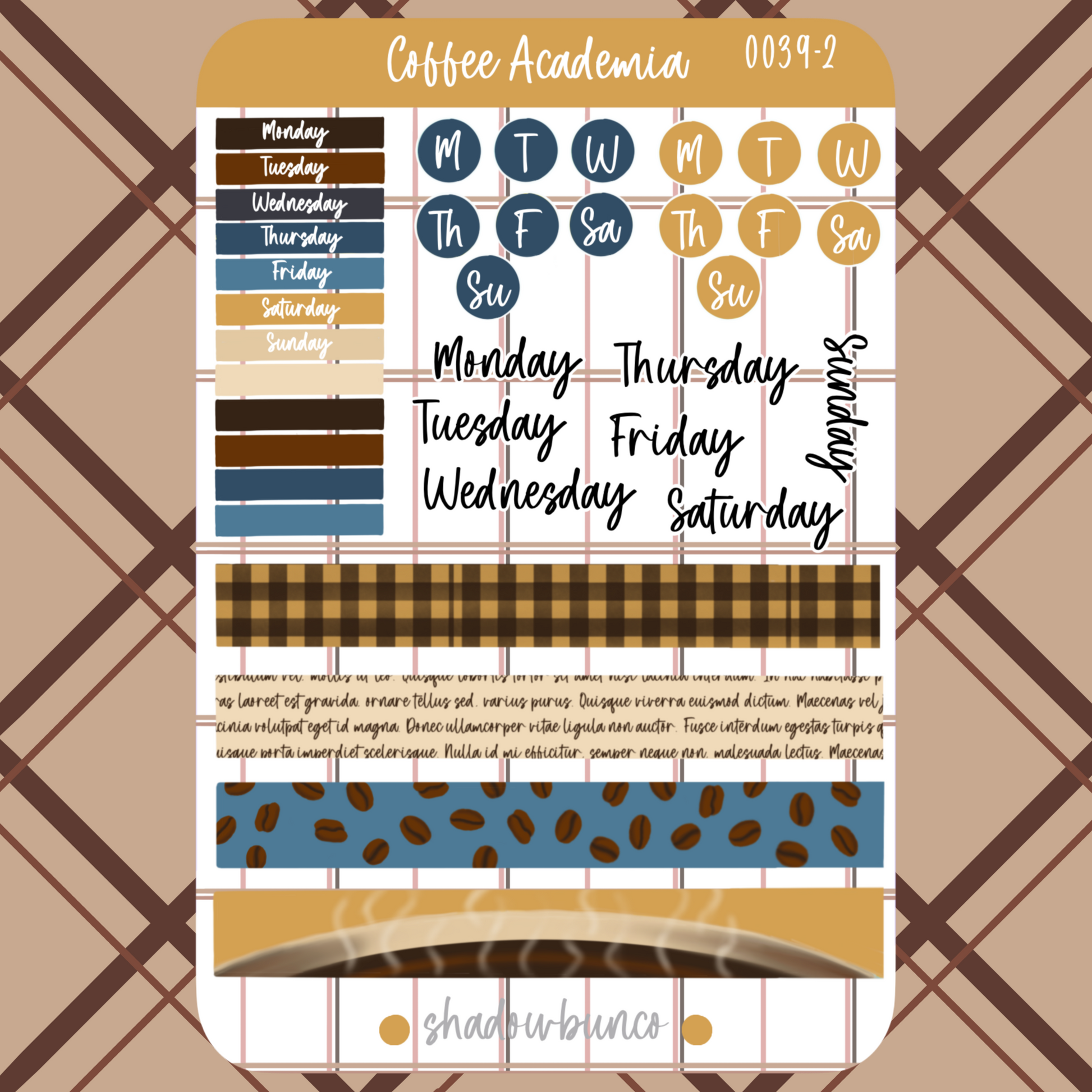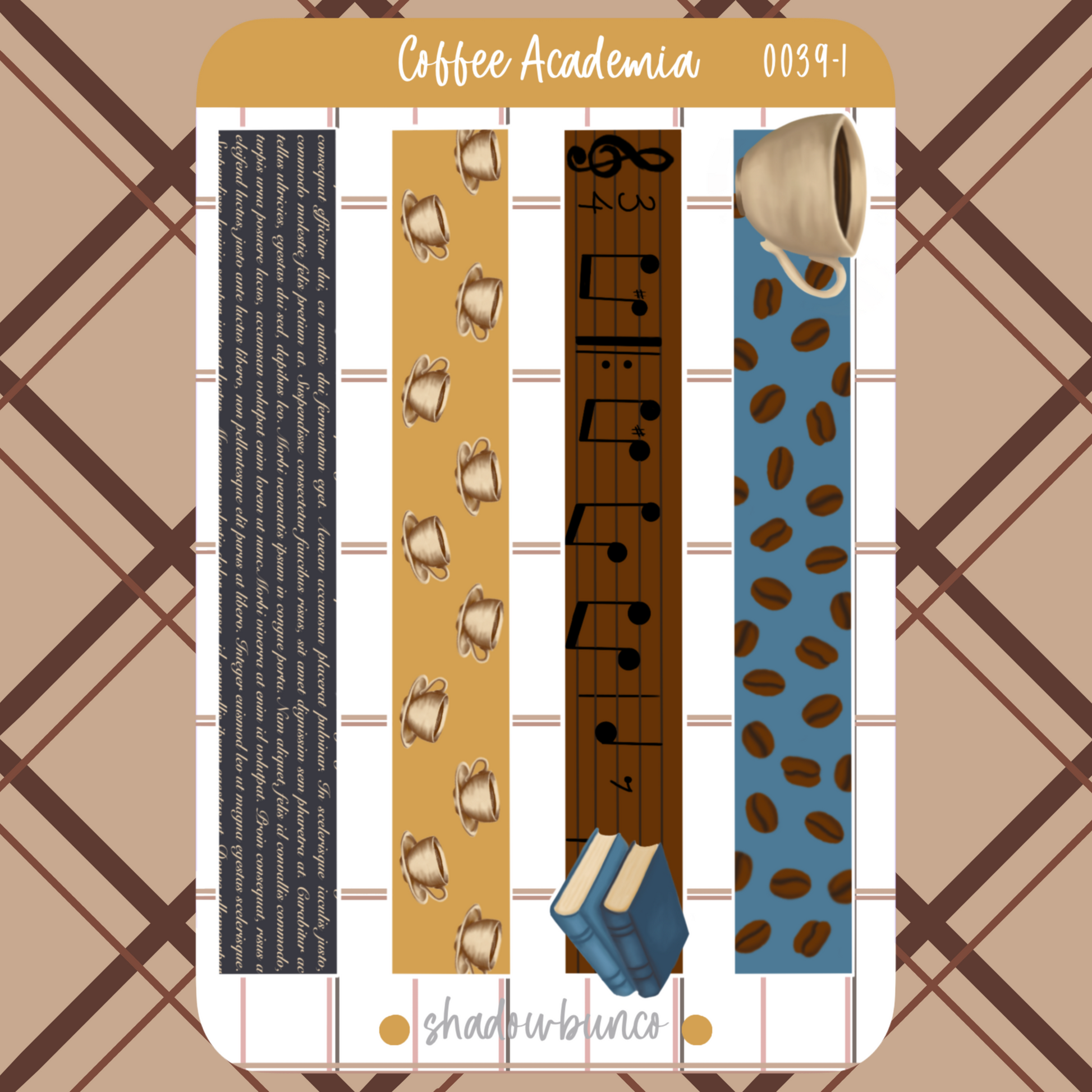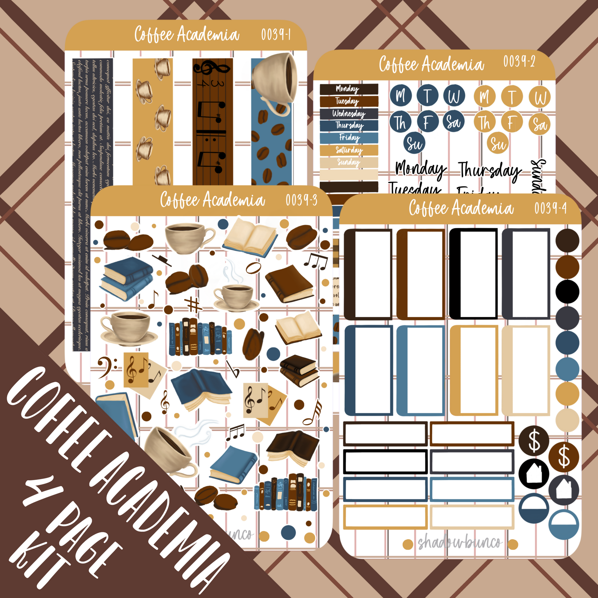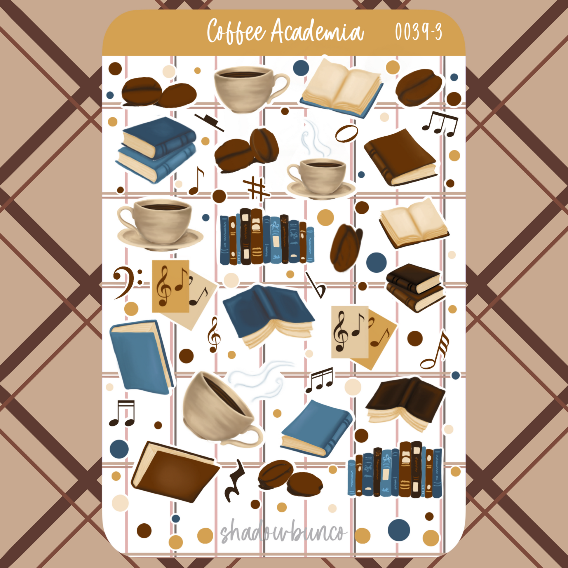 A sticker kit for coffee and book lovers! Perfect for the cozy times of the year or for when you just want that cozy vibe in general. Some music references are thrown in as well becasue music can always set the mood. Soft neutrals witha pop of desaturated blue, I bring you Coffee Academia,